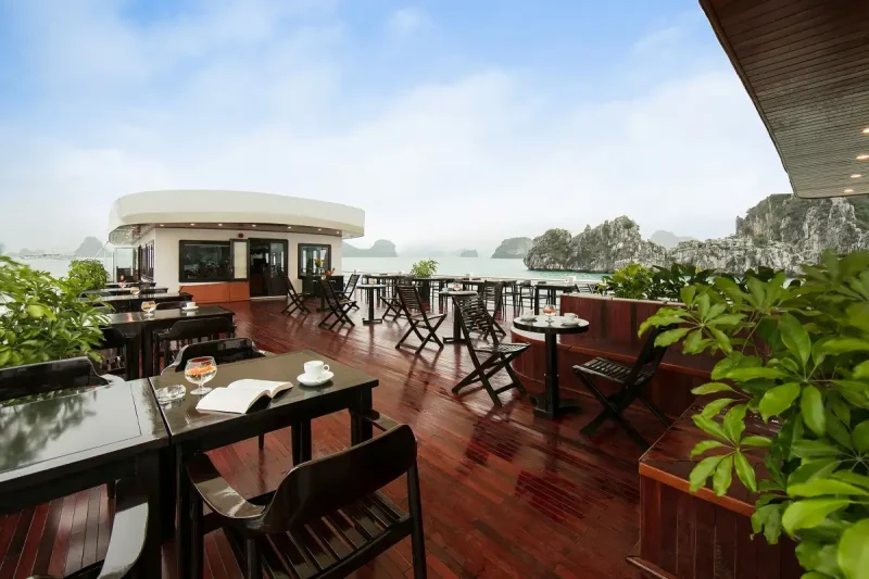 - Khu vực Sundeck (Boong Tắm Nắng): Không gian mở rộng rãi ở tầng 4, nơi du khách có thể thư giãn, tập Tai Chi hoặc ngắm cảnh toàn vịnh.